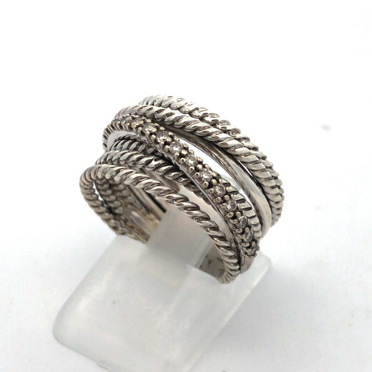 David Yurman 925 Sterling Silver 14K White Gold Diamond Crossover 7 Band Ring