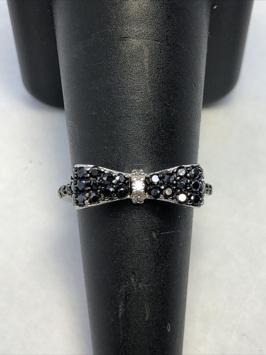 Estate 925 Sterling Silver Faceted Black Onyx Cubic Zirconia 3D Bow Ring