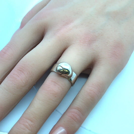 Navajo Marcella James 925 Sterling Silver 14 Yellow Gold Abstract Bear Band Ring