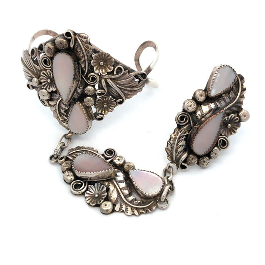 Harry B Yazzi Navajo 925 Sterling Silver Abalone Slave Ring Cuff Bracelet