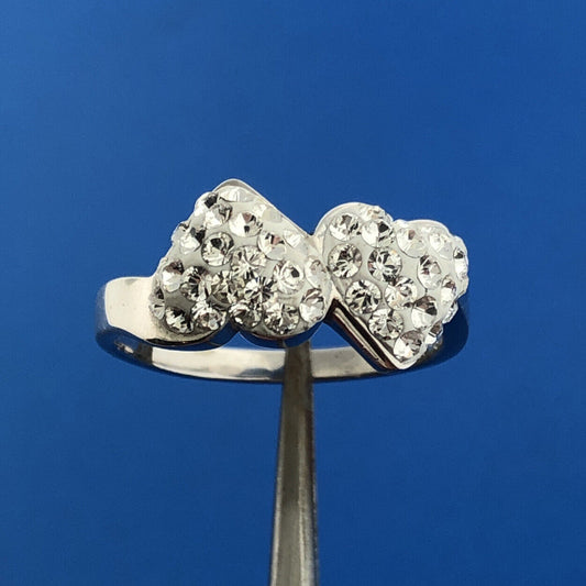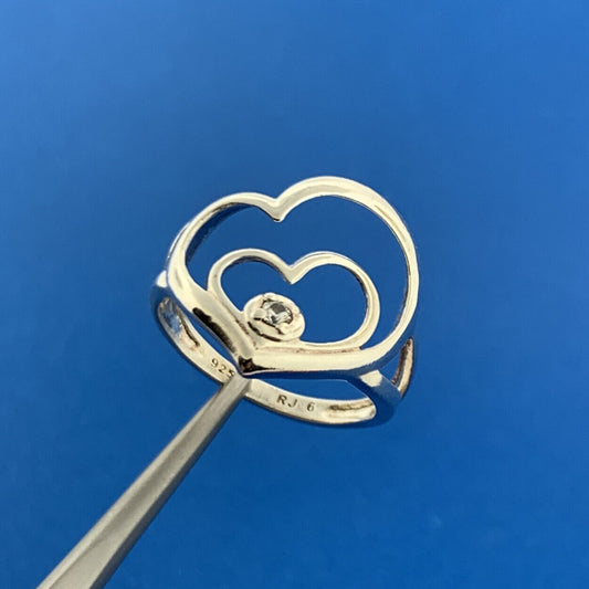 Designer 925 Sterling Silver Diamond Double Heart Love Sweetheart Promise Ring