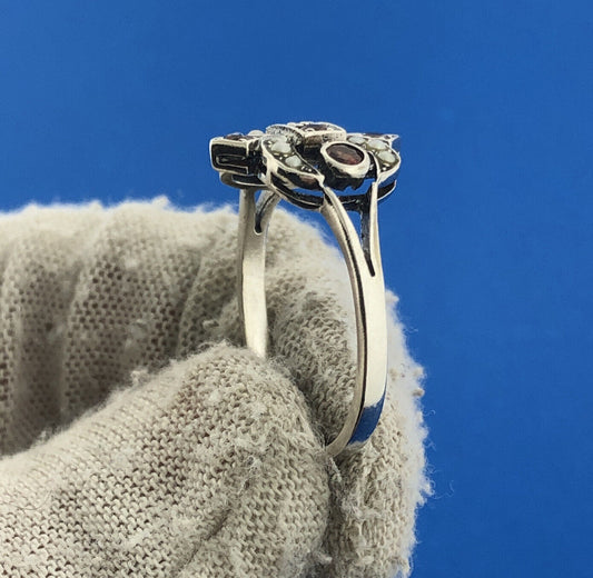Vintage Sterling Silver 925 Orange Crystal Seed Pearl Fleur De Lis Ring
