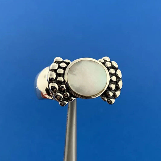 Designer NF 925 Sterling Silver Mother Of Pearl Oval Cabochon Beaded Style Ring