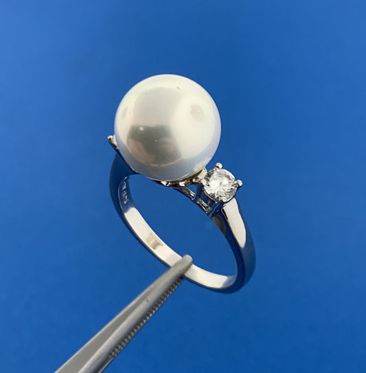 Stunning Sterling Silver 925 Faux Pearl Sparkling Round Cut CZ Ring Size 9