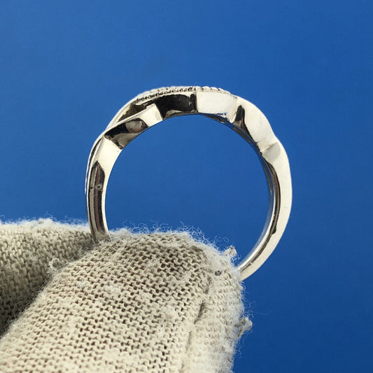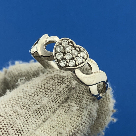 Stunning Sterling Silver 925 Sparkling CZ Openwork Twisting Heart Ring Size 6.25