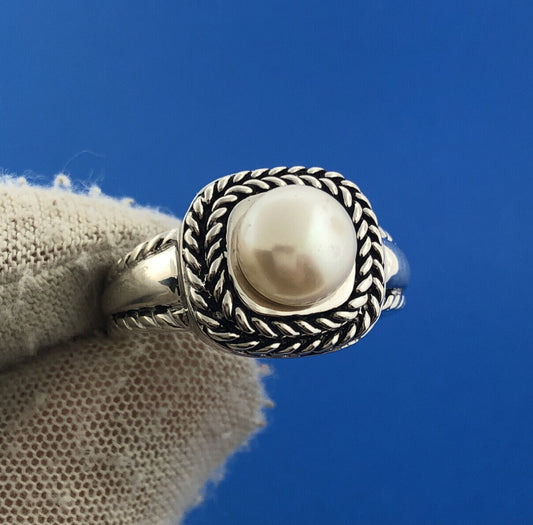 Stunning Sterling Silver 925 White Pearl Square Rope Statement Ring Size 11