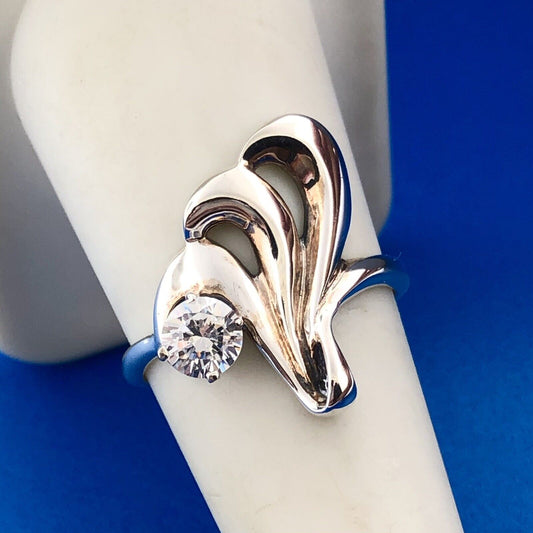 Kabana Modernist Heart 925 Sterling Silver Diamonique Cubic Zirconia CZ Ring