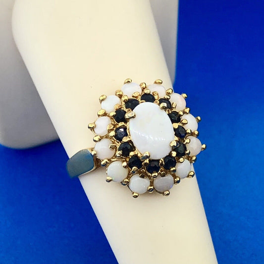 Designer 925 Sterling Silver Vermeil Opal Sapphire Halo Gold Toned Cocktail Ring
