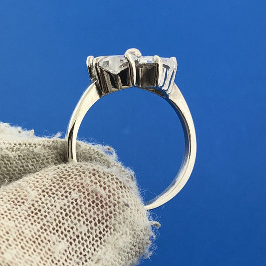 Stunning Sterling Silver 925 Sparkling Heart Cut CZ Clover Flower Ring Size 8