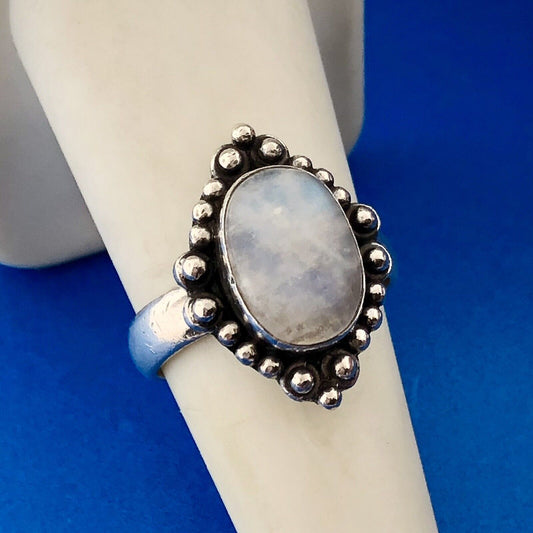 Estate 925 Sterling Silver Oval Moonstone Cabochon Beaded Style Ring