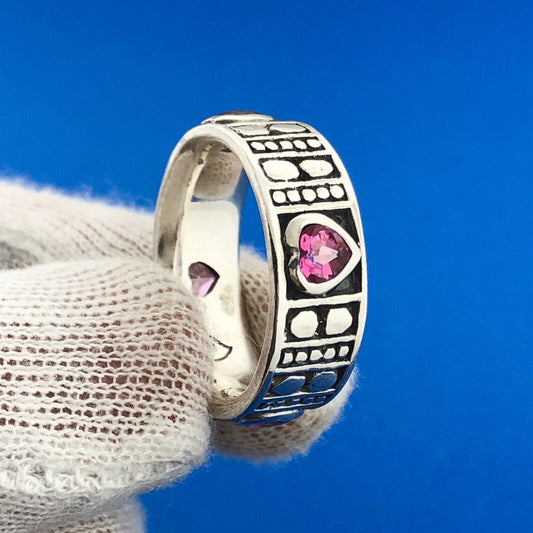 Stunning Sterling Silver 925 Heart Cut Pink Spinel Passion Love Band Ring Size 8