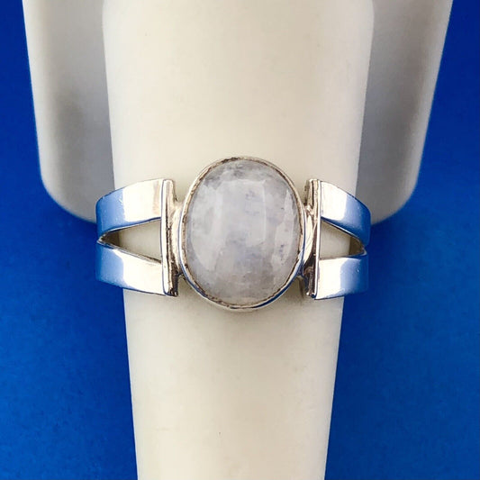 Retro 925 Sterling Silver Oval Moonstone Cabochon Modernist Ring