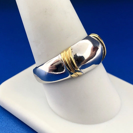 Designer SETA Two Toned Sterling Silver 925 Polished Ribbed Band Ring