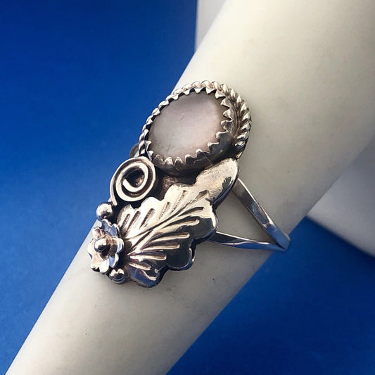 Vintage Sterling Silver 925 Mother Of Pearl Floral Vine Scroll Fashion Ring