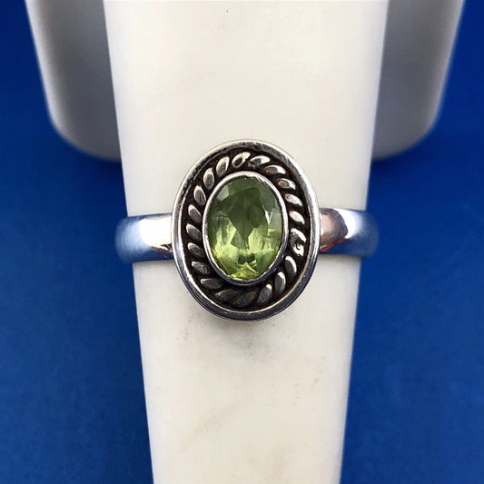 Retro Sterling Silver 925 Oval Peridot August Anniversary Birthstone Ring