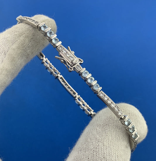 Designer 925 Sterling Silver Blue Topaz Cubic Zirconia Accented Tennis Bracelet