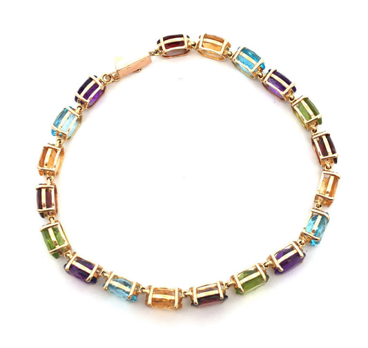 Designer 14K Yellow Gold Oval Mixed Gemstone Statement Mother's Tennis Bracelet
