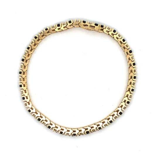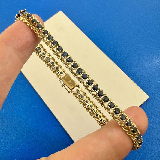 Vintage 14K Yellow Gold Round Blue Sapphire Diamond Statement Tennis Bracelet