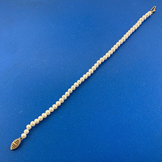 Designer RTI 10K Yellow Gold White Pearl Beaded Tennis Bracelet