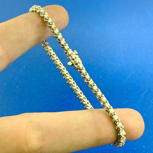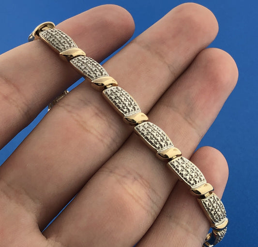 Classic Sterling Silver 925 Vermeil Two Tone Diamond Statement Tennis Bracelet