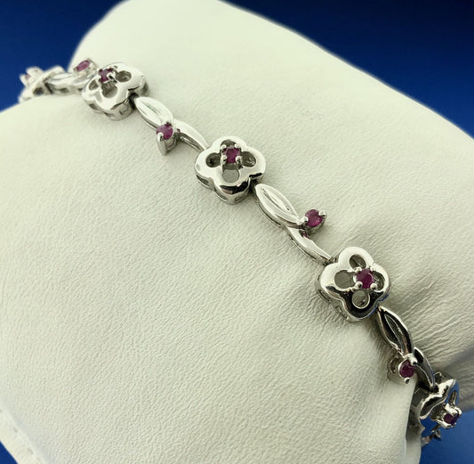Designer 925 Sterling Silver Ruby Floral Vine July Anniversary Tennis Bracelet