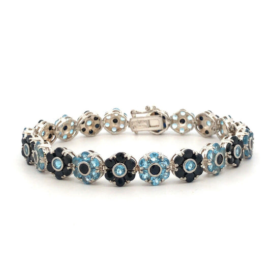 Designer 925 Sterling Silver Round Blue Topaz Sapphire Floral Tennis Bracelet