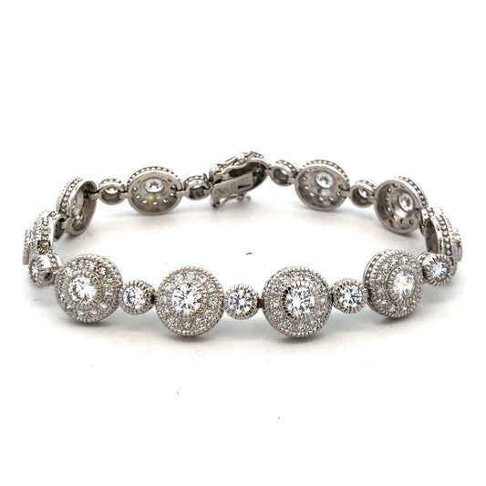 Designer R 925 Sterling Silver Round Cubic Zirconia CZ Retro Tennis Bracelet