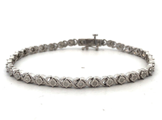 925 Sterling Silver Designer UD Round Diamond Infinity X & O Tennis Bracelet