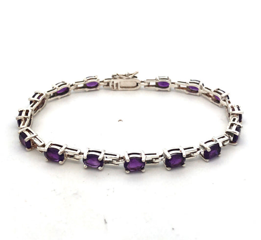 Designer R 925 Sterling Silver Oval Purple Amethyst Tennis Bracelet