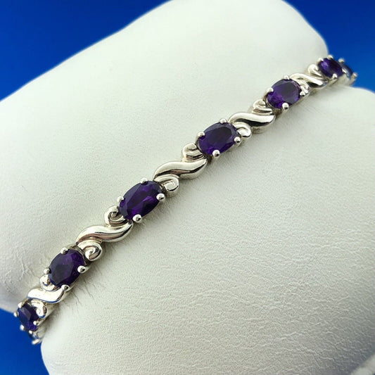 Sterling Silver 925 Oval Amethyst S Link February Anniversary Tennis Bracelet