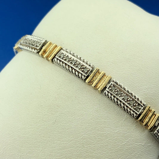 Estate CI 925 Sterling Silver Vermeil Two Tone Diamond Bar Panel Tennis Bracelet