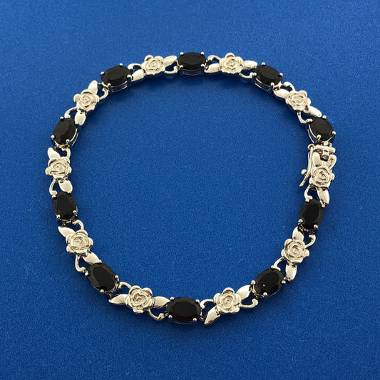 Designer 925 Sterling Silver Oval Garnet Flower Station January Tennis Bracelet