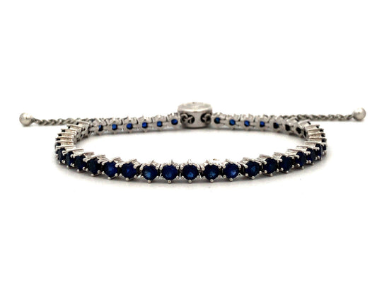 Designer DL 925 Sterling Silver Round Blue Sapphire Adjusable Tennis Bracelet