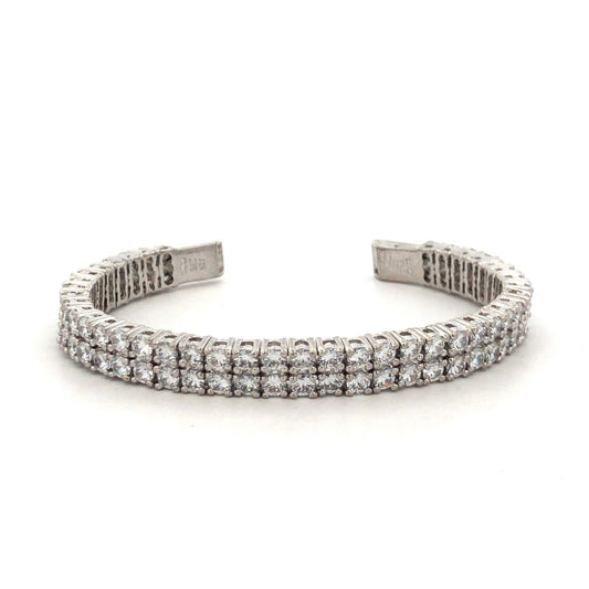 Designer ADT 925 Sterling Silver Round Cubic Zirconia CZ Tennis Cuff Bracelet