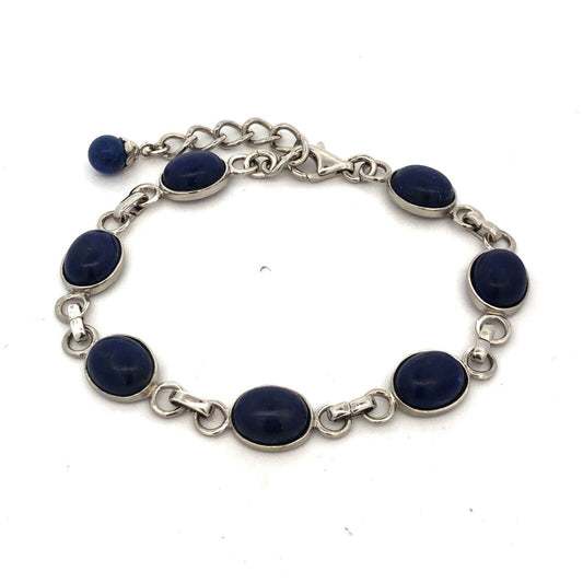 Estate 925 Sterling Silver Oval Cabochon Blue Lapis Lazuli Tennis Bracelet