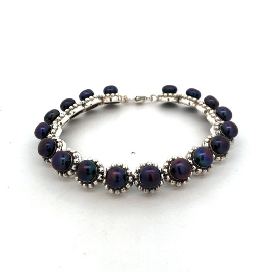 Designer 925 Sterling Silver Round Tahitian Pearl Tennis Bracelet