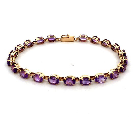 Designer 10K Yellow Gold Purple Amethyst February Birthstone Tennis Bracelet