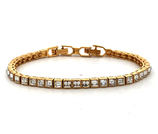 Swarovski Gold Tone Princess Cut Clear Crystal Statement Tennis Bracelet