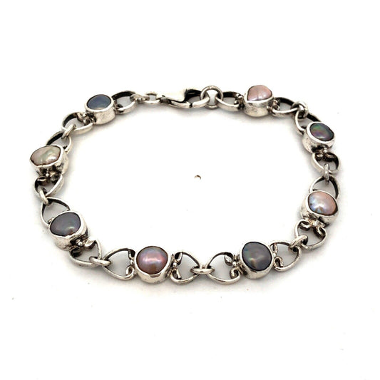 Vintage 925 Sterling Silver Pearl Tahitian Pearl Tennis Bracelet