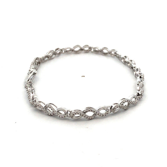 925 Sterling Silver Designer JWBR Textured Infinity Anniversary Tennis Bracelet