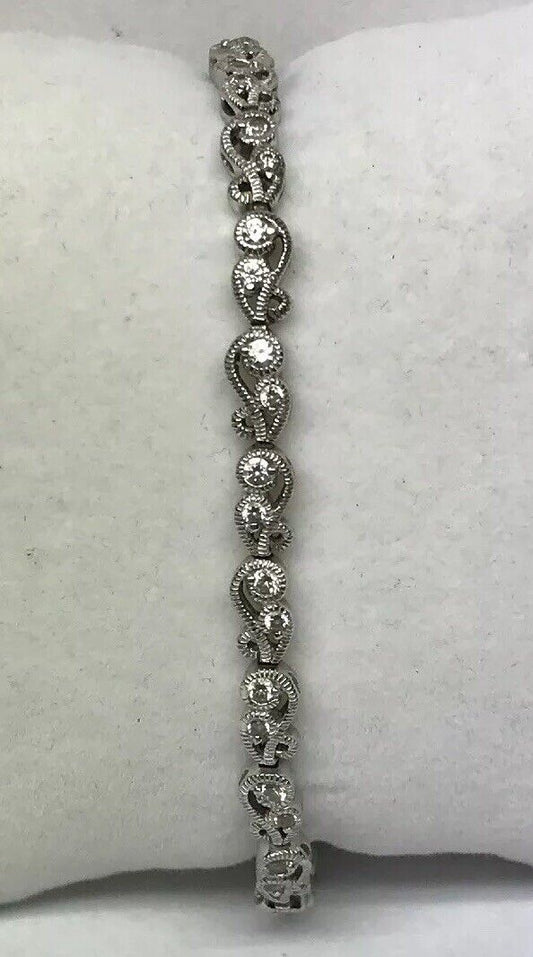 Tacori Sterling Silver 925 Cubic Zirconia CZ Open Scroll Link Tennis Bracelet
