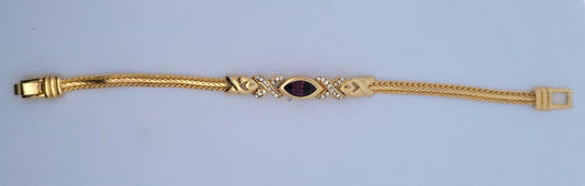 Vintage Swarovski America Ltd. Gold Tone Purple White Crystal XO Tennis Bracelet