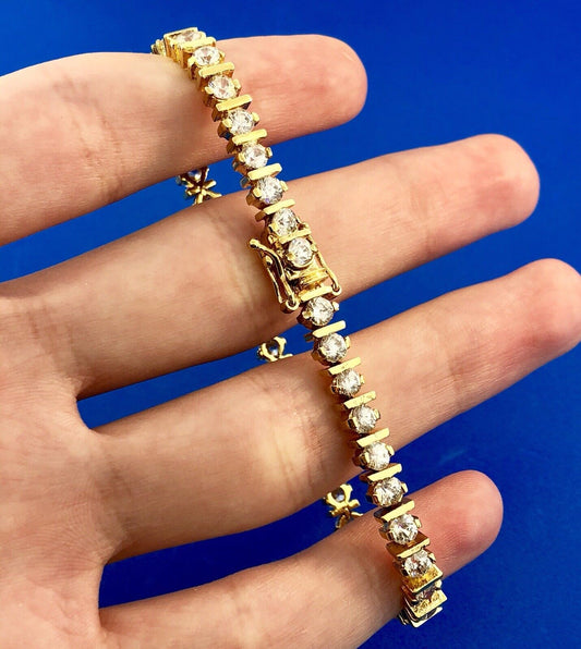 Dramatic 925 Sterling Silver Vermeil Cubic Zirconia CZ Statement Tennis Bracelet