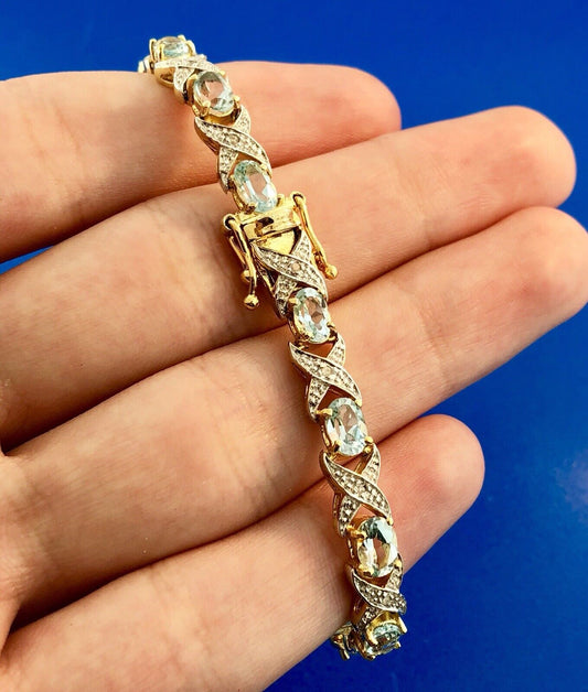 Designer DBJ Sterling Silver 925 Vermeil Blue Topaz Diamond X O Tennis Bracelet
