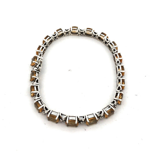 Designer HN 925 Sterling Silver Oval Yellow Citrine Diamond Tennis Bracelet