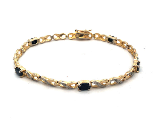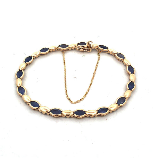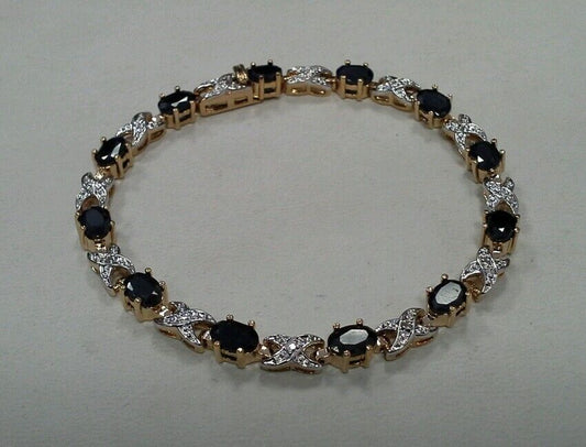 Retro Sterling Silver Vermeil 925 Oval Sapphire X O Two Toned Tennis Bracelet
