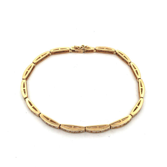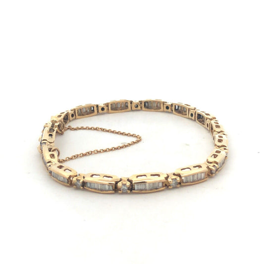 14K Yellow Gold Baguette Round Diamond Tennis Bracelet