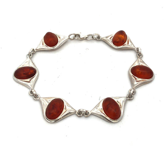 Modernist 925 Sterling Silver Oval Amber Cabochon Link Tennis Bracelet