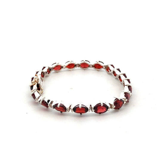Designer 925 Sterling Silver Oval Red Garnet Tennis Bracelet