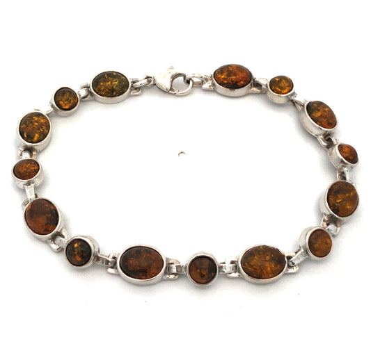 Vintage 925 Sterling Silver Oval Round Cabochon Amber Tennis Bracelet